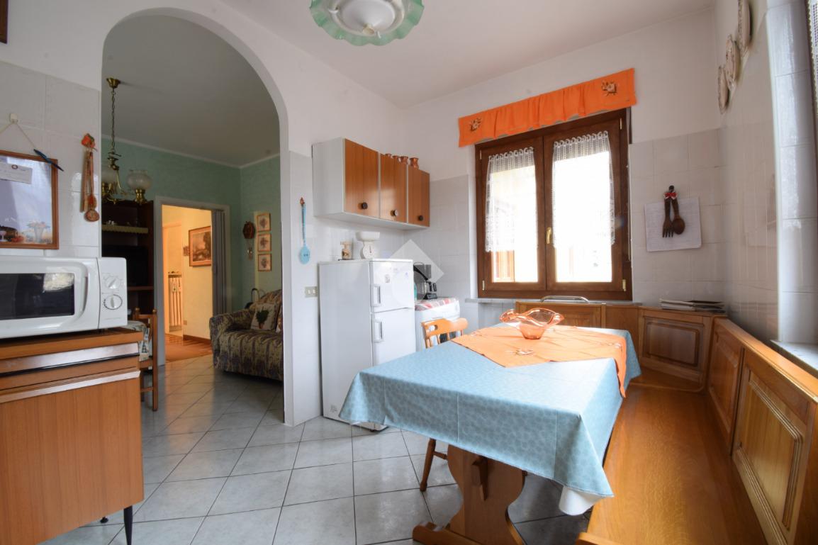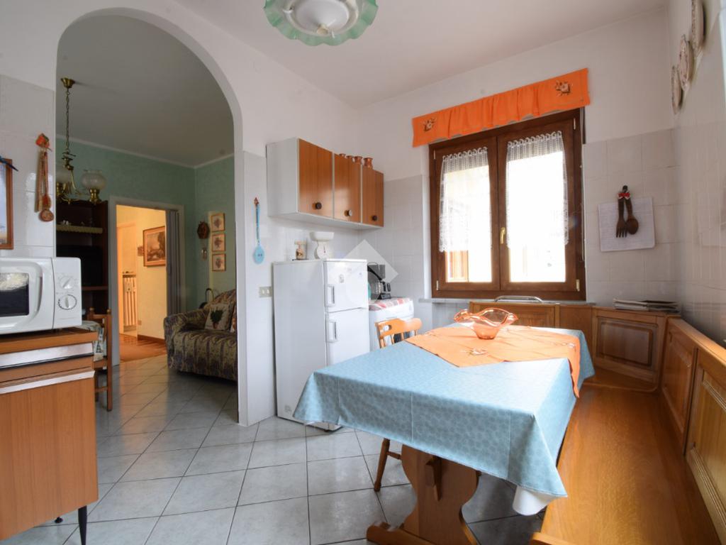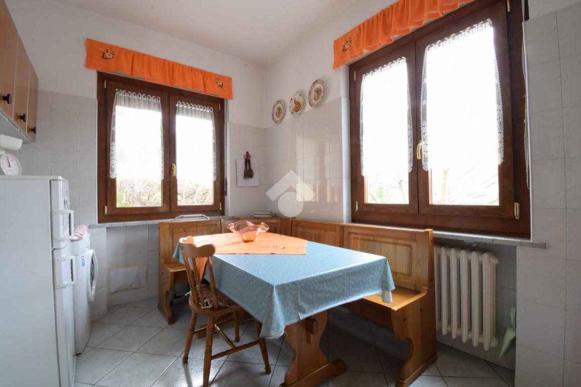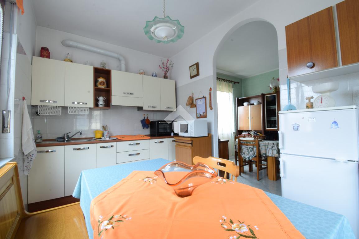 L'ingresso dell'abitazione apre su un corridoio che divide gli ambienti della casa. La cucina, posta a Sud-Est è molto luminosa e recentemente è stata rinnovata. La sala da pranzo è in continuità con la cucina e ottiene una buona luminosità grazie alla finestra esposyta a Sud. Il piccolo soggiorno, imporeziosito dal parquet, è attualmente utilizzato come cameretta aggiuntiva. Questi tre ambienti sono facilmente collegabili al fine di ottenere un grande unico living open-space.