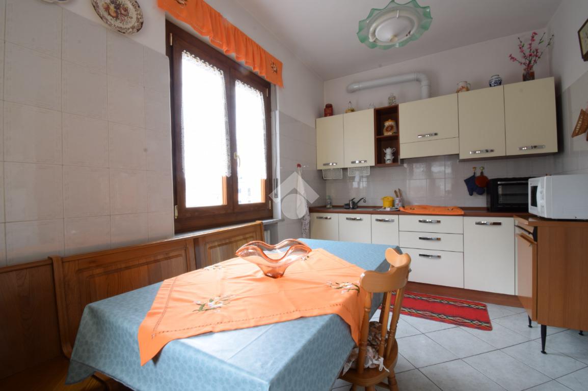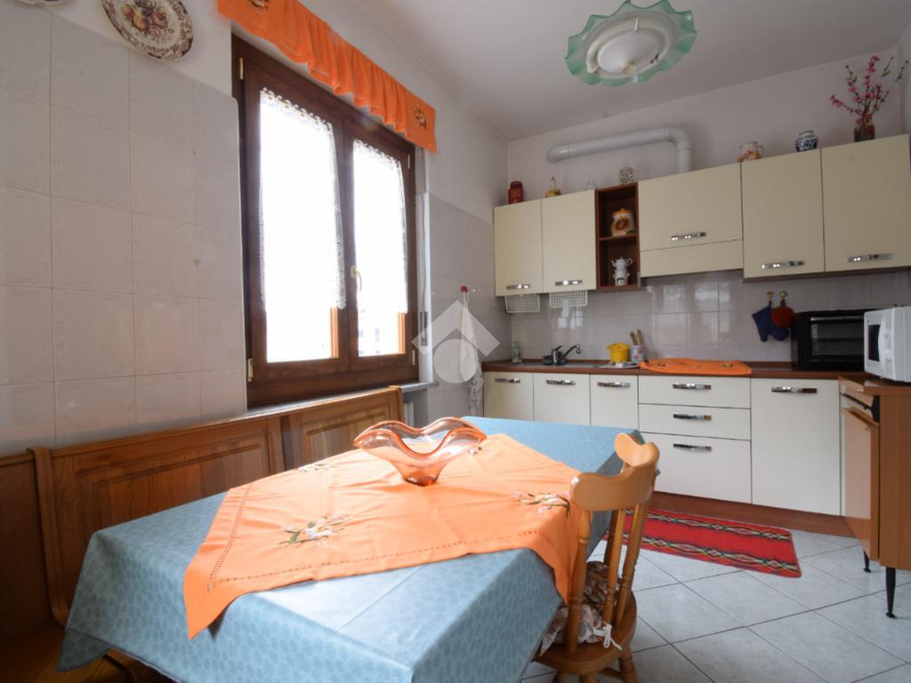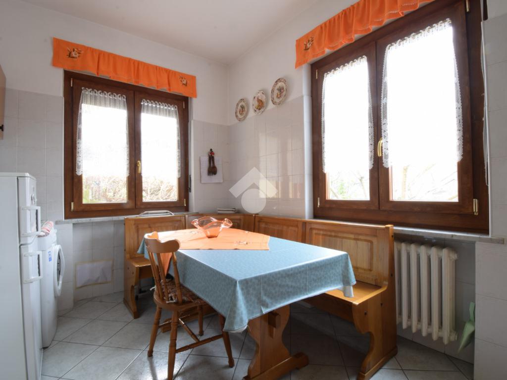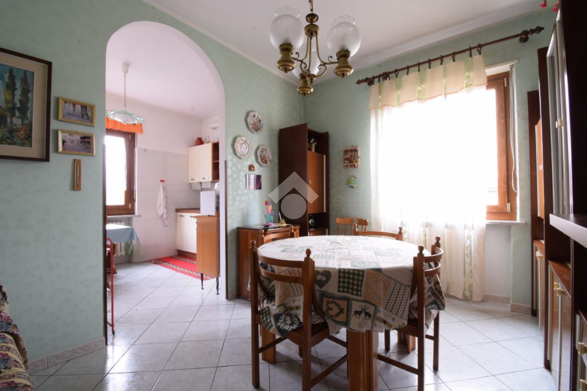 L'ingresso dell'abitazione apre su un corridoio che divide gli ambienti della casa. La cucina, posta a Sud-Est è molto luminosa e recentemente è stata rinnovata. La sala da pranzo è in continuità con la cucina e ottiene una buona luminosità grazie alla finestra esposyta a Sud. Il piccolo soggiorno, imporeziosito dal parquet, è attualmente utilizzato come cameretta aggiuntiva. Questi tre ambienti sono facilmente collegabili al fine di ottenere un grande unico living open-space.