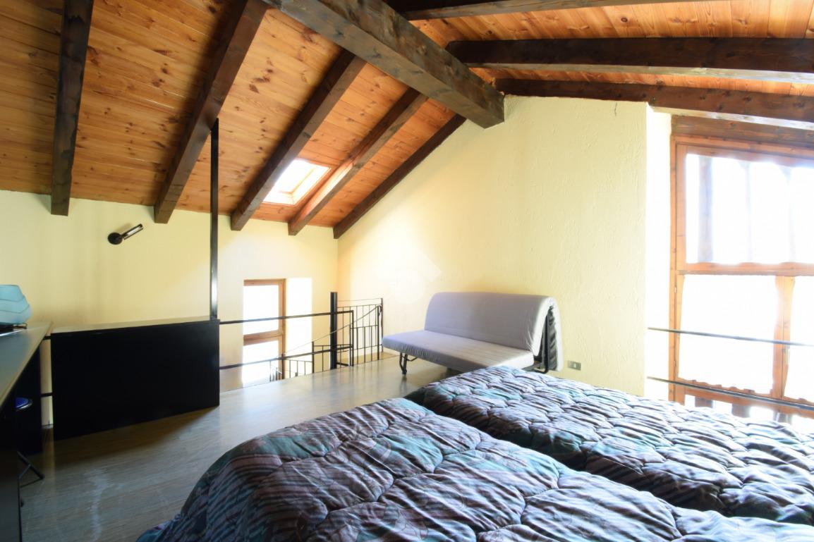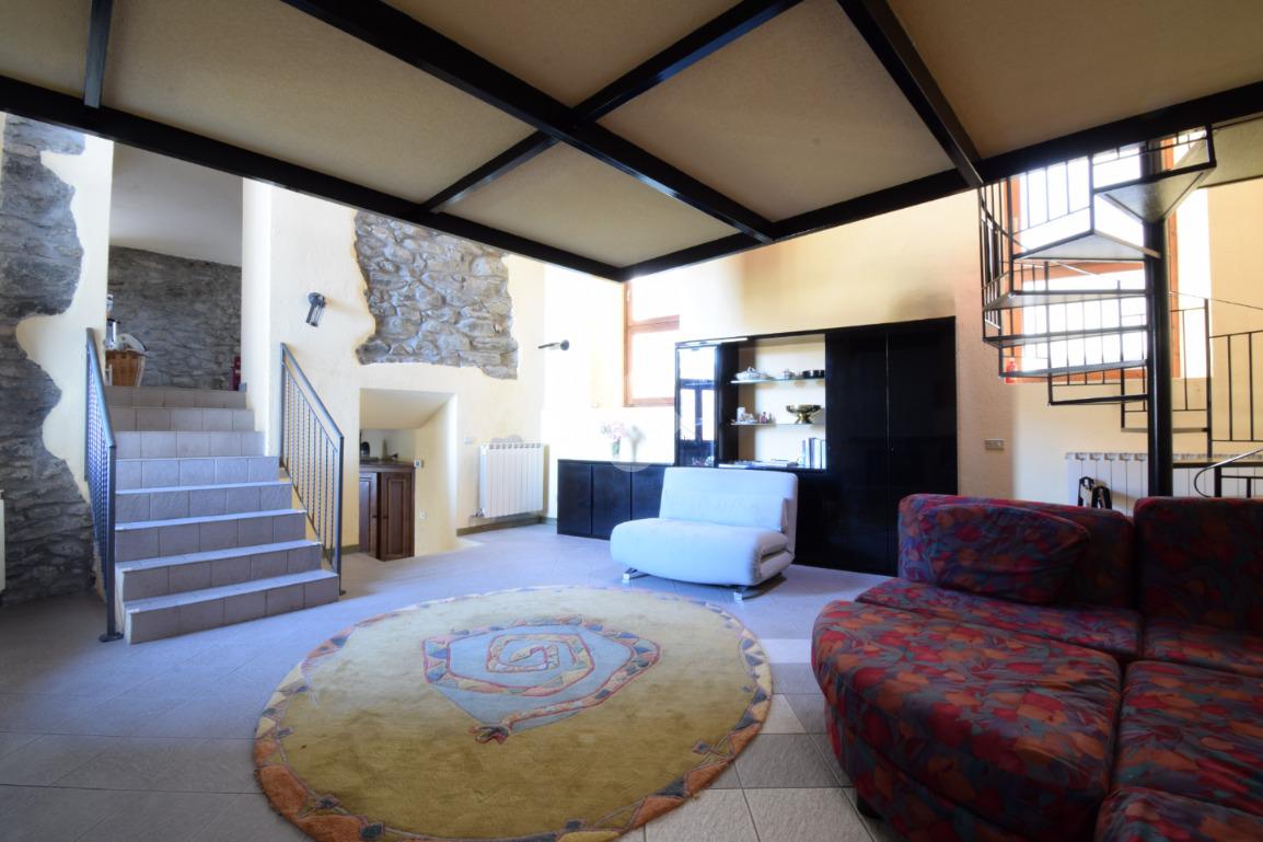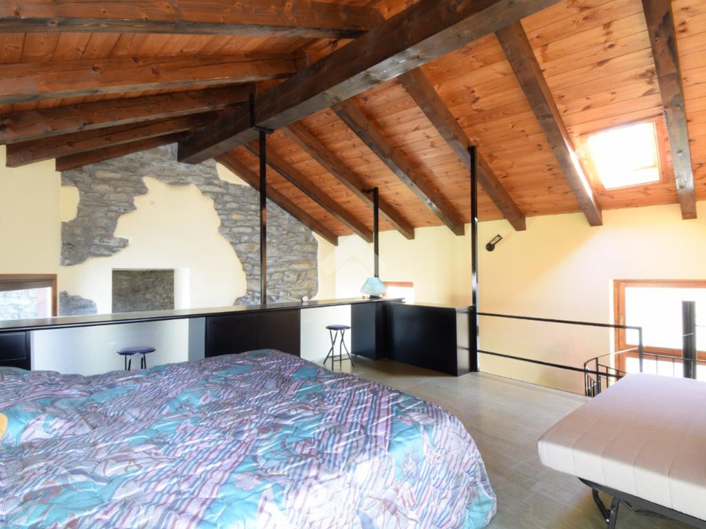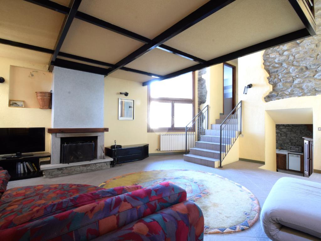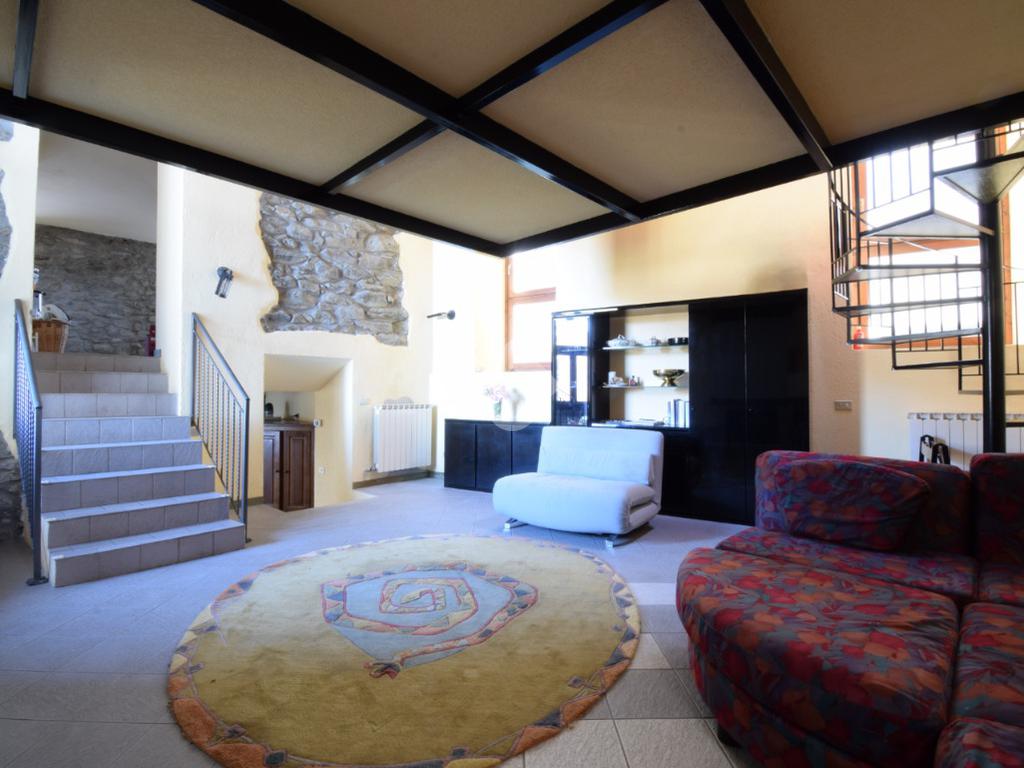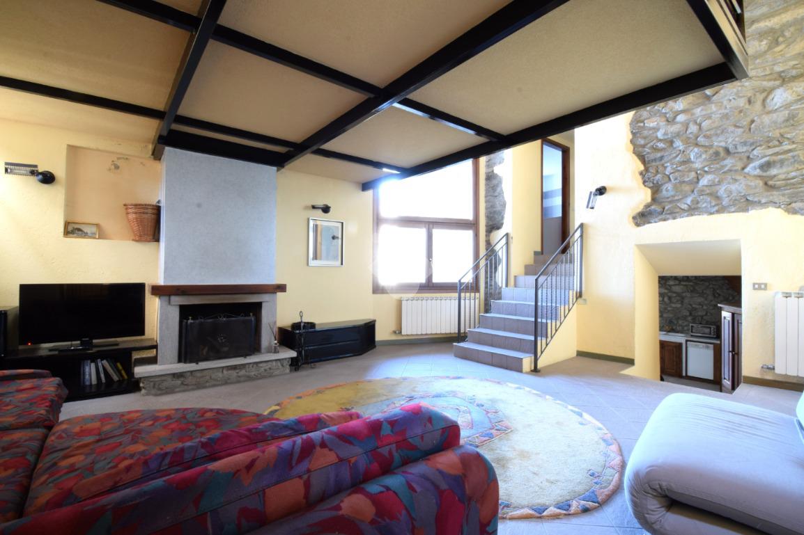 Il salone presenta un'architettura unica accostando i caratteri tipici delle case di montagna che si ritrovano nella pietra a vista, nel camino a legna e nel tetto in legno, a caratteri moderni dati dal soppalco con struttura in travi di acciaio. Questo spazio è il vero cuore della casa e permette tra i divani letto ed il soppalco con altri posti letto di poter accogliere più persono contemporaneamente.