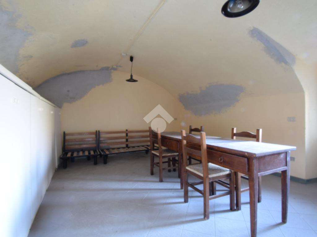 Il piano seminterrato è suddiviso in un box auto ed un caratteristico locale di deposito voltato adibito a tavernetta. Il riscaldamento è autonomo a GPL e la caldaia è stata appena sostituita.